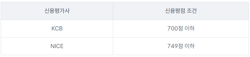 신용평점 하위 20%이신 분들이라면 (연소득이 3,500만원 이하라도) 신청하실 수 있습니다.
